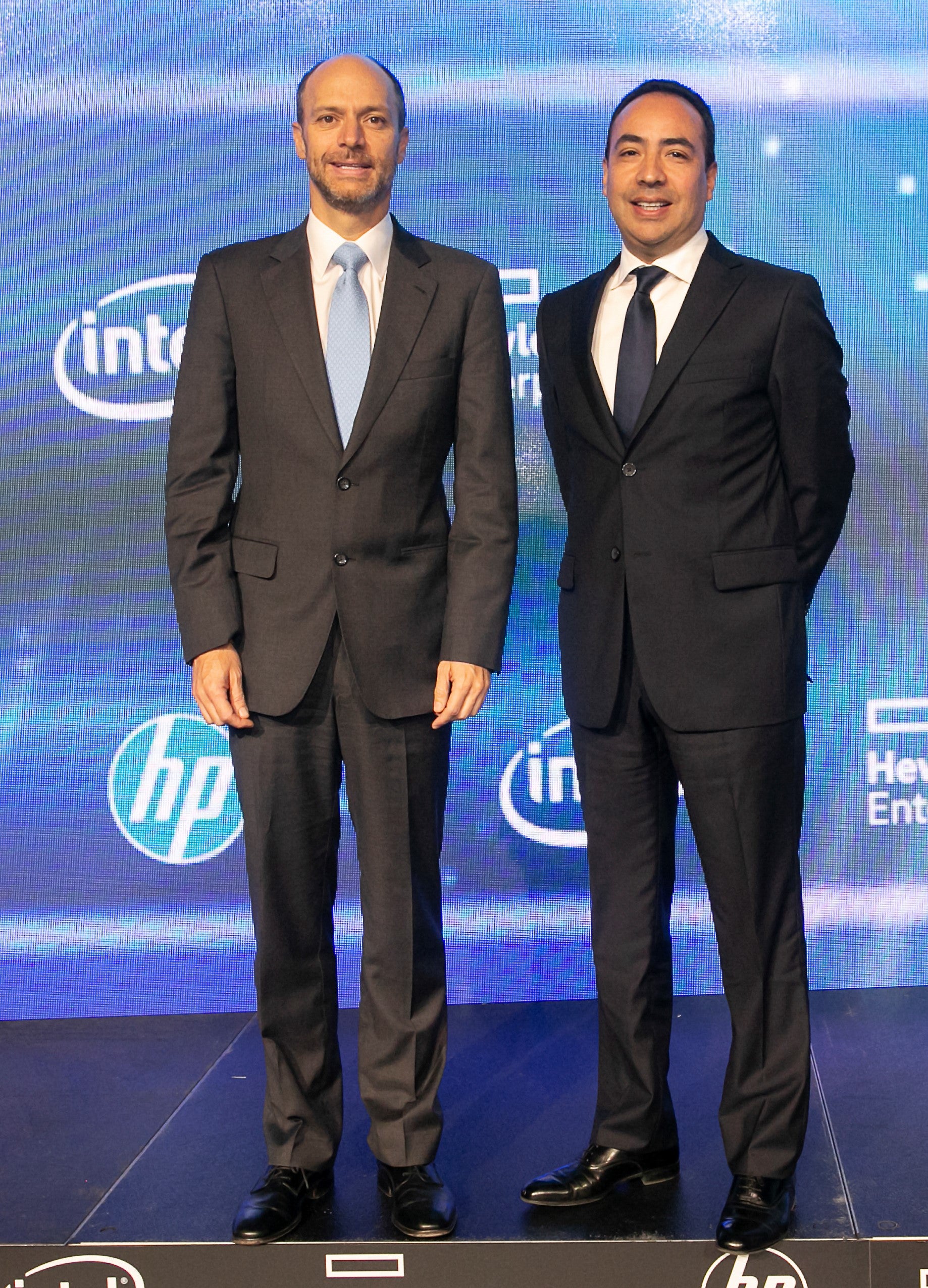 Mateo Figueroa, gerente de HP Inc. en Colombia; Juan Martin Barrero, director general de Hewlett Packard Enterprise en Colombia.