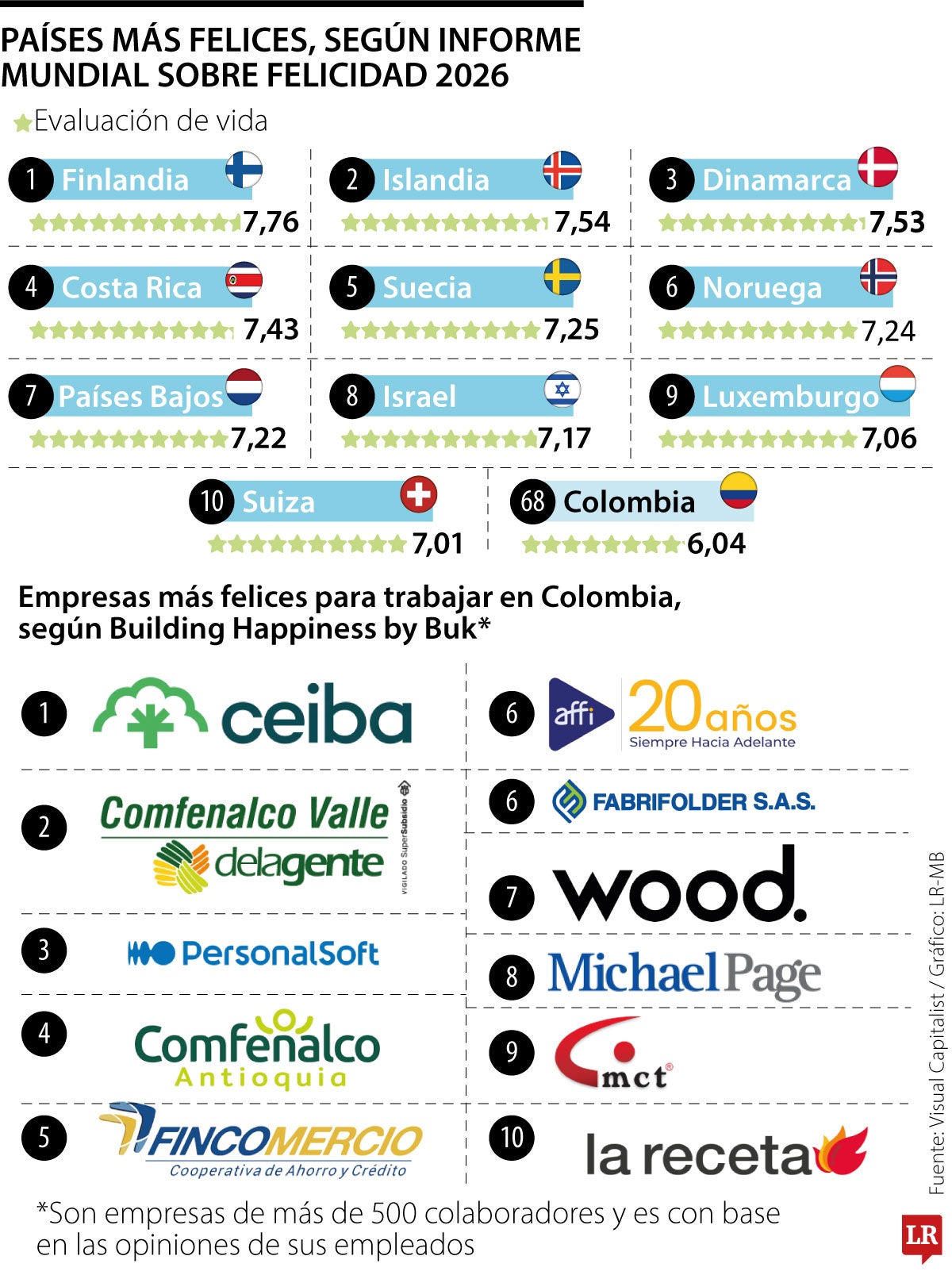 Una de las conclusiones clave es que “en Norteamérica y Europa Occidental, los jóvenes son mucho menos felices que hace 15 años. Durante ese mismo periodo, el uso de las redes sociales ha aumentado considerablemente. Muchos culpan a las redes sociales de esta disminución de la felicidad”. Los cinco primeros del escalafón son Finlandia, Islandia, Dinamarca, Costa Rica y Suecia. Colombia ocupa el puesto 68 entre 147 países medidos.