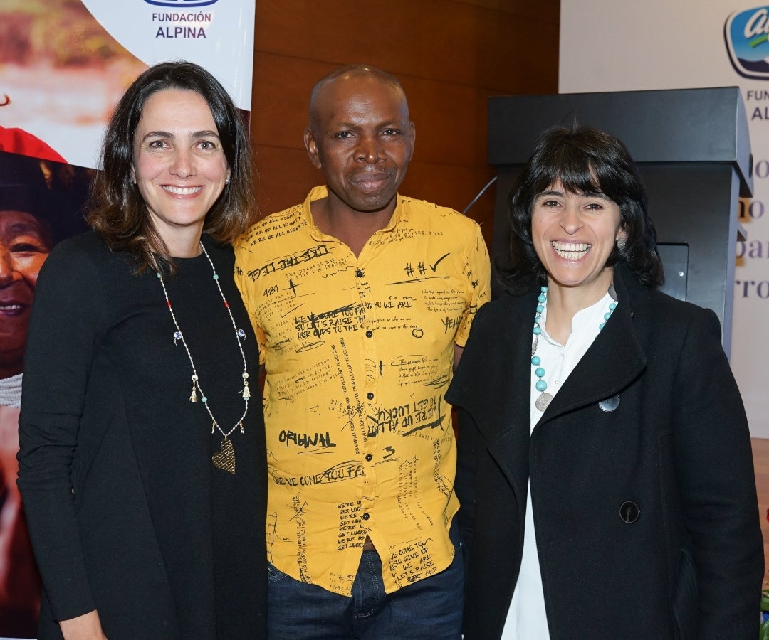 Cristina de la Vega, directora ejecutiva de Alpina; Célimo Caicedo, líder de Proagrotam de El Tembo, Cauca; y Constanza Alarcón, viceministra de Educación Preescolar, Básica y Media.
