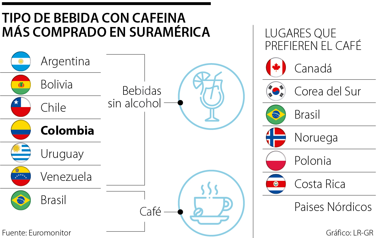 La investigación de Euromonitor, que busca conocer como se distribuye el consumo del café, té y bebidas como sodas que incluyen cafeína, en diferentes regiones del mundo.