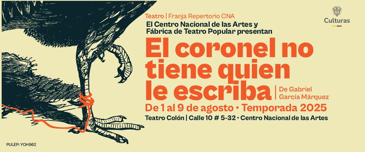 Una obra del repertorio teatral colombiano llega al escenario del Centro Nacional de las Artes. El coronel no tiene quien le escriba, adaptación de la novela de Gabriel García Márquez, dirigida por Jorge Alí Triana. Esta puesta en escena será presentada con funciones y boletería disponible desde $35.350 en tuboleta.com. a partir del 1 de agosto.