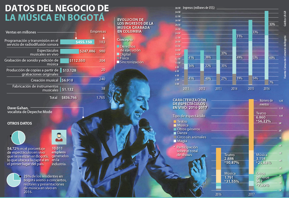 En ese crecimiento del negocio nacional de la música tiene mucha relevancia Bogotá, donde este sector movió $836.766 millones el año pasado, según cifras de la Cámara de Comercio de Bogotá (CCB).