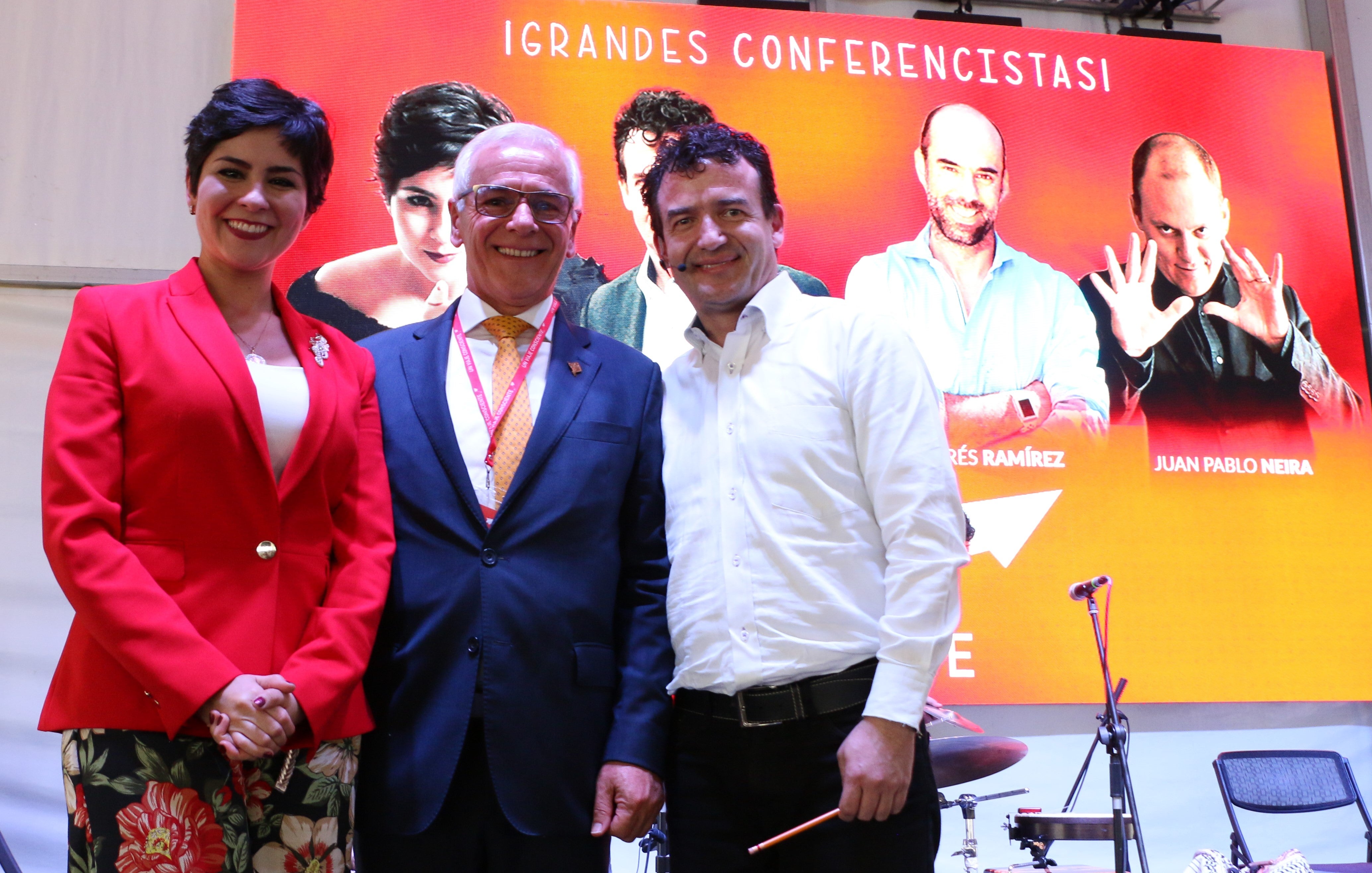 Sylvia Ramírez, consultora de felicidad y personal branding; Ricardo Sánchez, rector del Gimnasio Los Arrayanes; y Ricardo Gómez, músico, compositor, fundador de En Vivo.