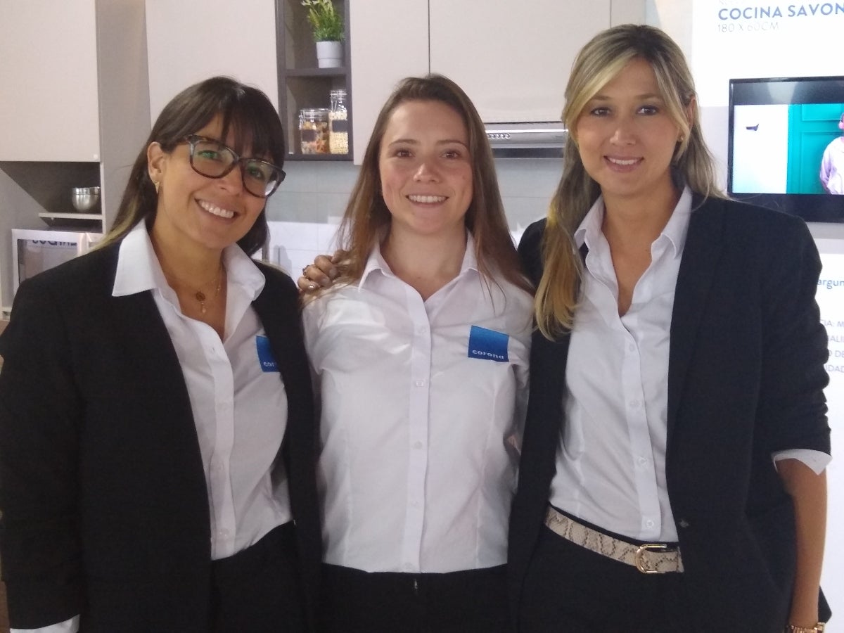 Carolina Múnera, coordinadora de mercadeo en sanitarios; Pilar Blanco, coordinadora del negocio institucional; y Natalia Ramírez, coordinadora del negocio de cocinas y áreas de servicio de Corona.