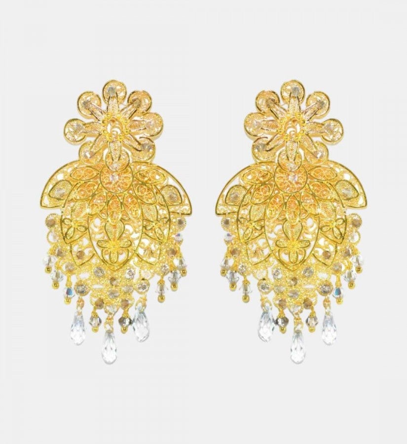 El accesorio que estará en la tienda son un par de aretes de la diseñadora caleña, dueña de la marca. Estos son fabricados a mano con la técnica de la filigrana colombiana, delicadas hebras de oro bordadas y tejidas finamente con cristales de Swarovski. Se caracteriza también por tener un toque moderno de coloridos y brillantes cristales.