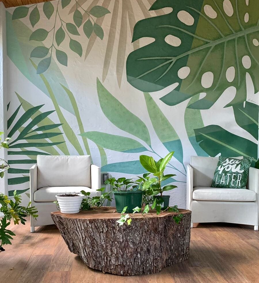 El artista explicó que este tipo de murales aplicados al interior también permiten jugar con otros elementos como mesas o plantas, para terminar el concepto. “Quienes quieren transformar un espacio piensan mucho en plantas y animales”, concluyó.