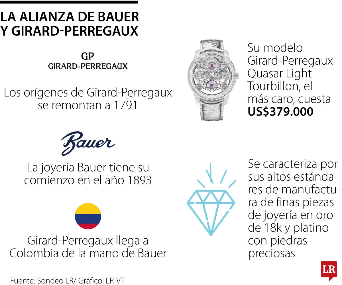 Bauer será el encargado de distribuir de manera oficial los relojes de Girard-Perregaux, los cuales, en un primer momento, abren el mercado colombiano con dos de sus colecciones insignia, Bridges y Laureato; sin embargo, posteriormente su oferta se irá ampliando con más relojes y colecciones de lujo.
