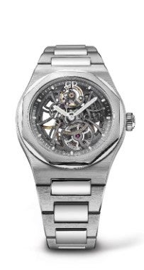 Es un reloj con un calibre GP08400-0001 y movimiento automático. Cuenta con una reserva de marcha de 48 horas, 29 joyas y un diámetro de 45 mm. Su espesor es de 12,18 mm, con hermeticidad de hasta 30 metros. La carátula esqueletada revela su diseño, mientras que la caja está hecha de titanio y el cristal de zafiro.