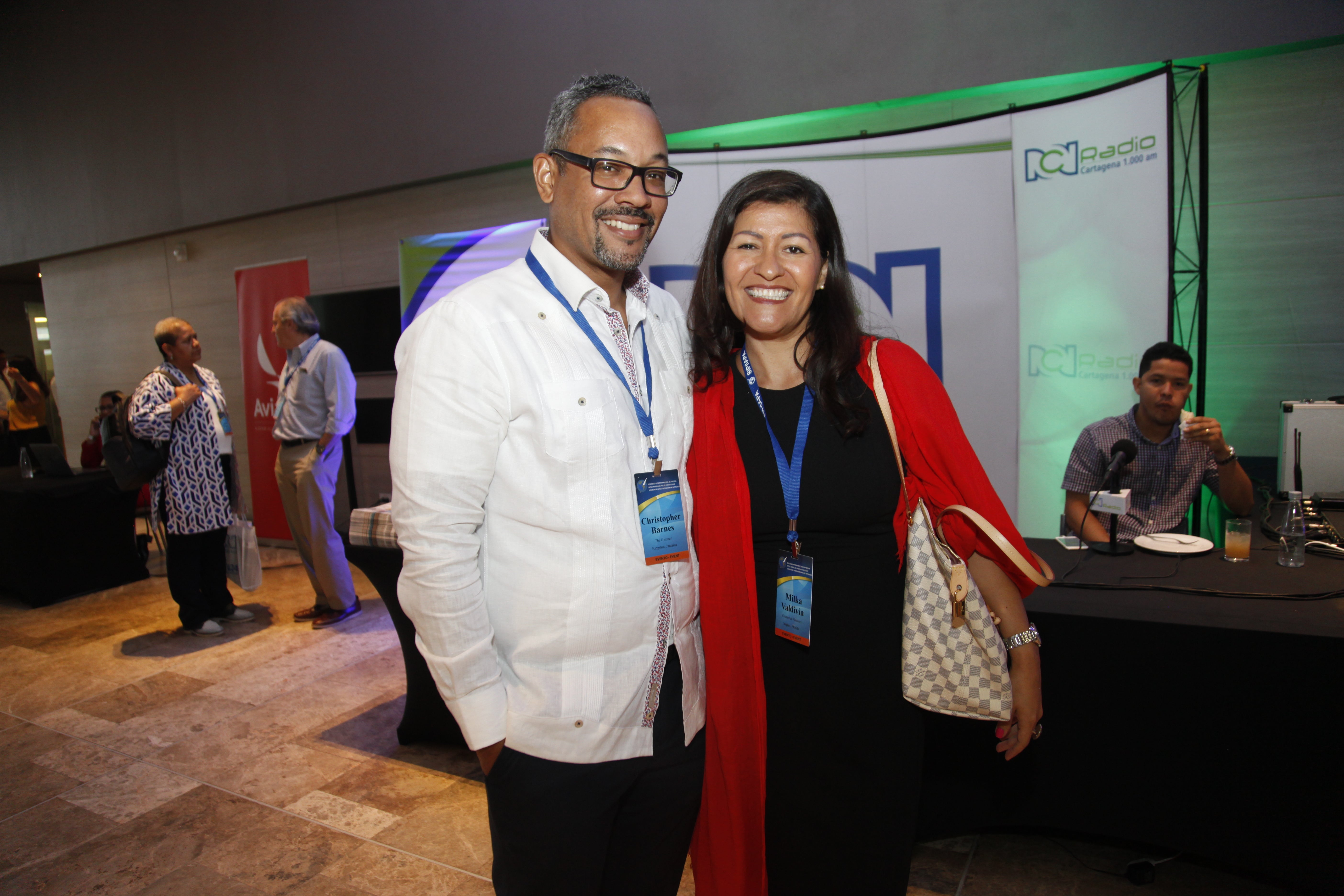 Christopher Barnes, primer vicepresidente de la SIP, y Mila Valdivia Pratt, directora de Fronteras Ventures.