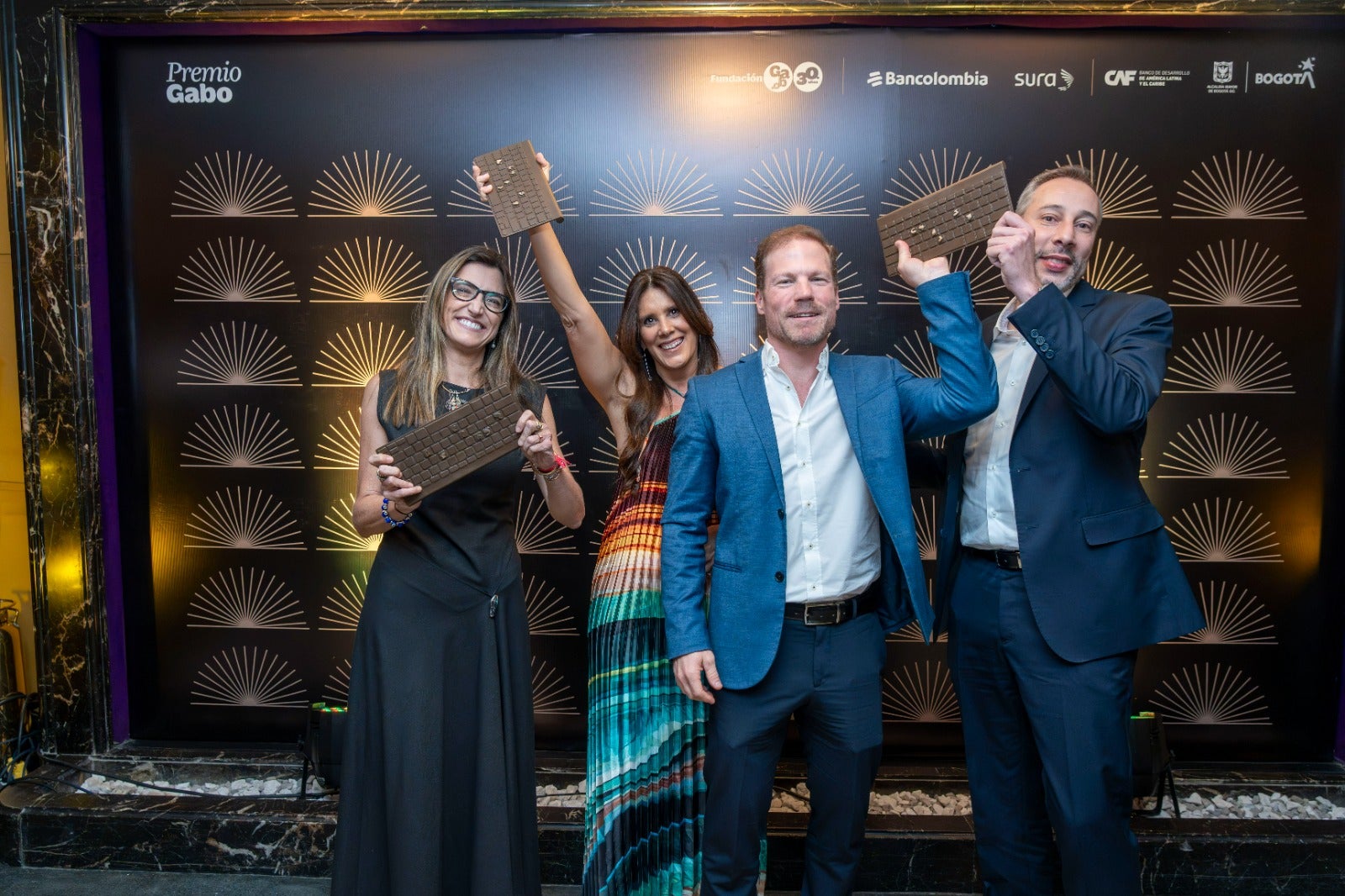 Patricia Campos Mello, periodista brasilera; Laura Zommer, periodista argentina; Joseph Poliszuk y Roberto Deniz, periodistas venezolanos.
