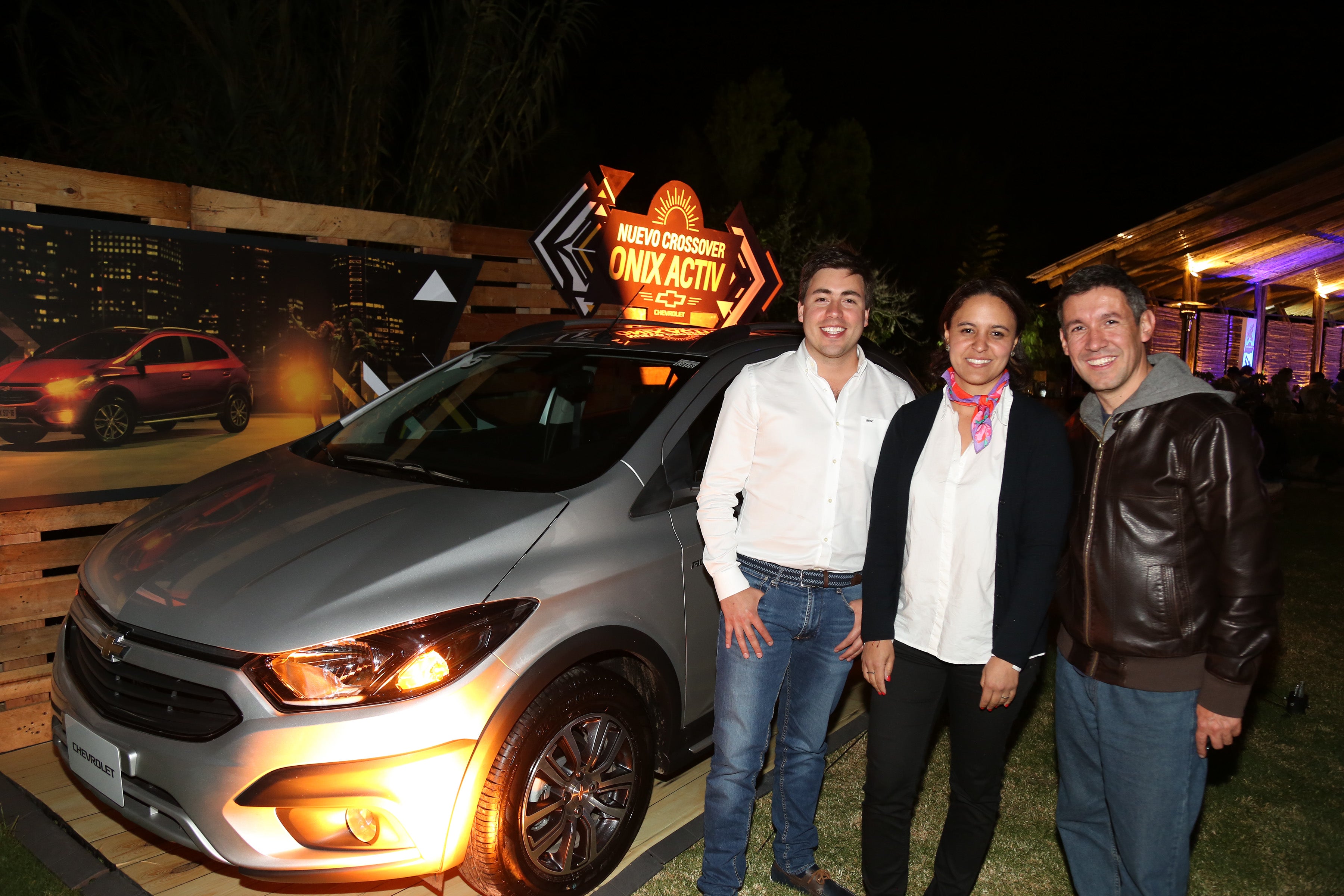 Foto: Juan David Arias, gerente de Producto de GM Andina; Diana Reynoso, gerente de Contenido de General Motors Andina; y Víctor Solano durante el lanzamiento del modelo Onix Activ organizado por Chevrolet.