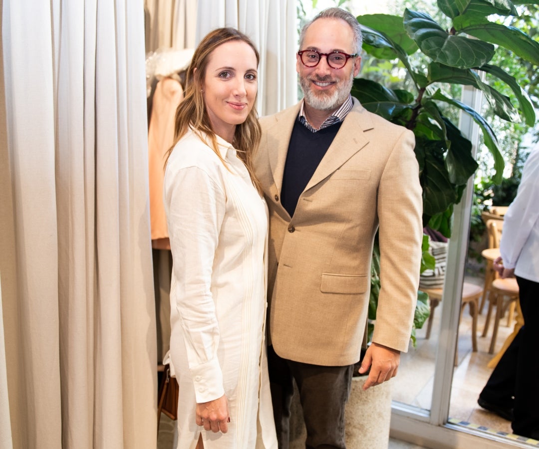 Sarah Schossow, invitada al evento, y Hernando Caicedo, empresario.