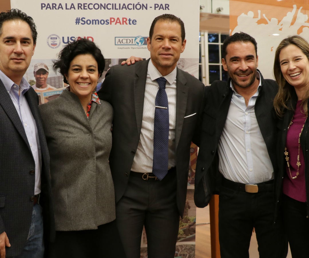 En la presentación del texto desarrollado por la Fundación Tiempo de Juego y el Programa de Alianzas para la Reconciliación de Usaid y ACI/Voca estuvo Ricardo Amaya, dir. Acdi/Voca; Jimena Niño de Acdi/Voca; Óscar Córdoba; Andrés Wiesner, pte. Fundación Tiempo de Juego, y Cristina Plazas, dir. Reconciliación Colombia.