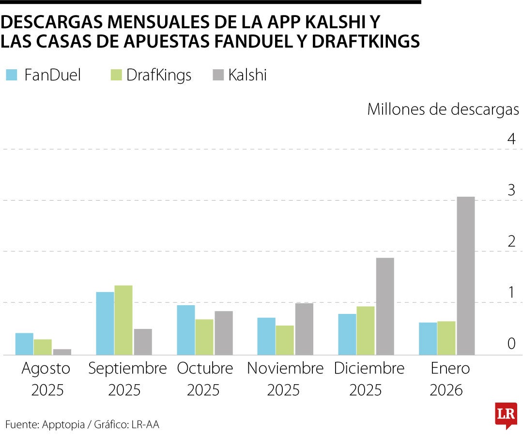 DraftKings y FanDuel se han tomado la amenaza en serio. En diciembre, ambos lanzaron sus propias aplicaciones de mercado de predicciones, que ya están disponibles en todos los estados donde sus aplicaciones tradicionales no están permitidas. Sin embargo, en conjunto, consiguieron poco menos de 100.000 descargas en enero, en comparación con los 1,9 millones de descargas de Kalshi, según datos de Sensor Tower.
