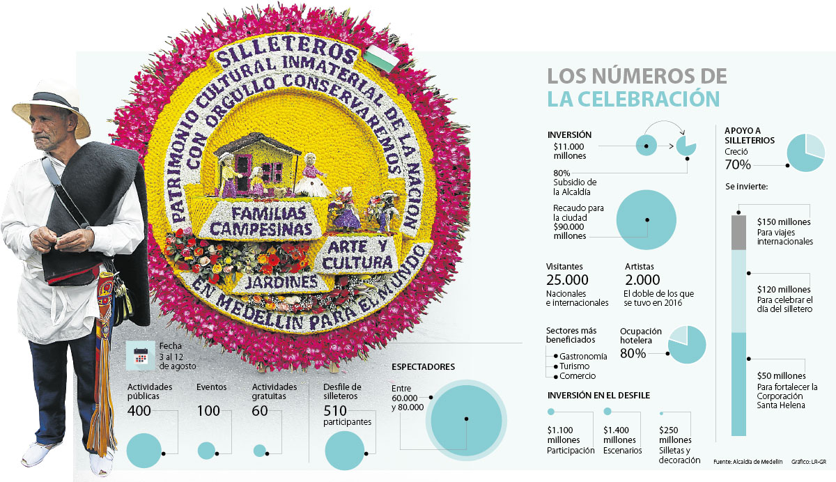 En total, la participación de estos silleteros tiene un valor de $1.100 millones, además de los $1.400 millones que invirtió la Alcaldía en silletas y escenarios para un desfile que este año verán entre 60.000 y 80.000 personas.