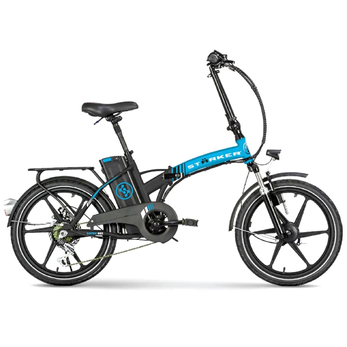 Esta bicicleta es de la casa Starker de la marca Auteco y tiene un motor eléctrico que asiste al usuario cuando pedalea para ayudar a avanzar y también cuenta con una batería de 36 voltios. Tiene autonomía por hasta 40 kilómetros a 25 kilómetros por hora y un motor de potencia 350 W. Cuenta con un sistema de control que incluye seis velocidades de variación mecánica y el tiempo de carga es de cuatro a seis horas.