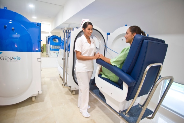 Este método también conocido como oxigenoterapia hiperbárica consiste en el uso de oxígeno 100% puro en una cámara presurizada. Esto ayuda no solo a oxigenar el cuerpo y ayudarlo a liberar toxinas o estrés, sino que también estimula las células que producen colágeno, estimula la respuesta inmunológica del cuerpo y ayuda en los procesos de cicatrización o posoperatorios.