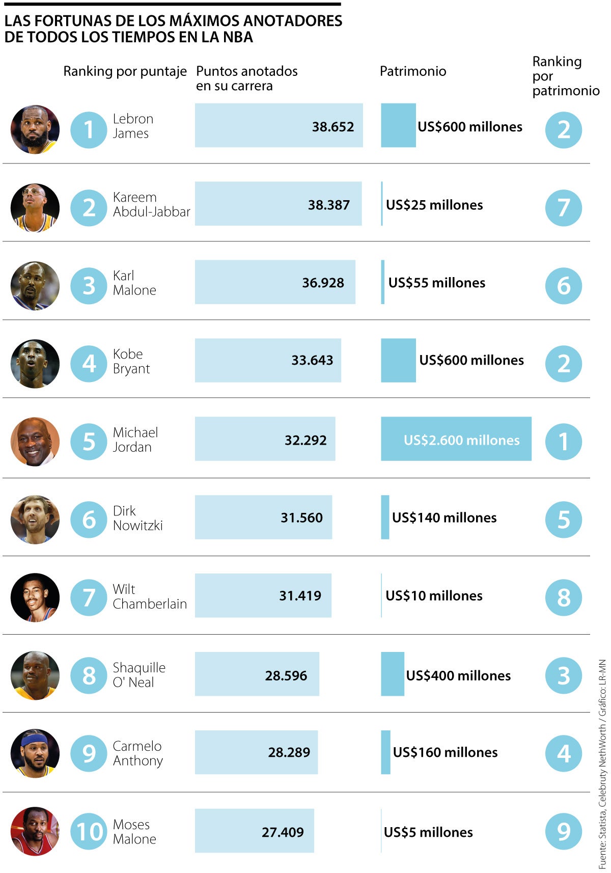 Aunque el mayor anotador de la historia es LeBron James, Michael Jordan es el anotador del top que acumula el mayor patrimonio