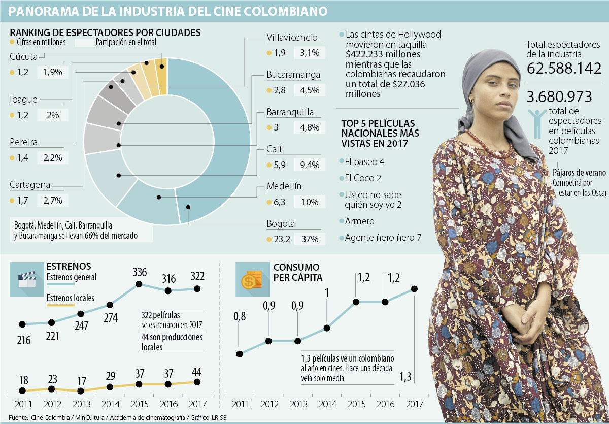 Pese a este impulso, no todo en la industria nacional es color de rosa, ya que las películas locales aún no llegan a 7% de lo que facturan las producciones de Hollywood en el país. “Las cintas distribuidas por los grandes estudios obtuvieron en taquilla $422.233 millones, mientras que las cintas colombianas exhibidas recaudaron un total de $27.036 millones en taquilla, con un total de 3,68 millones de espectadores”, dijo Adelfa Martínez, directora de cinematografía del Ministerio de Cultura.