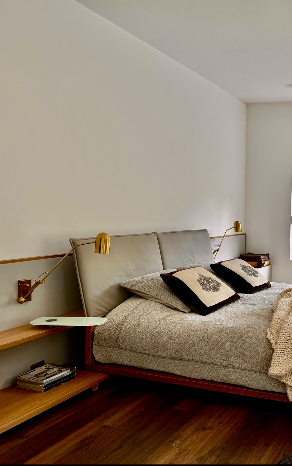 En este tipo de espacio, una opción de decoración sería las obras de arte, ya sea en forma de cuadro, escultura o mural, porque incita el desarrollo creativo. Este tipo de detalle es fácilmente combinado con el minimalismo puesto que no es necesario abusar de la cantidad ni del tamaño. Clavijo explica que, aunque esto sean tendencias, es importante adaptarlas al propio estilo, ya que a lo mejor este tipo de tonalidades en el cuarto tienen efectos distintos a la creatividad. El verde oliva, combinado con beige o blanco, transmite paz y tranquilidad para un sueño perfecto.