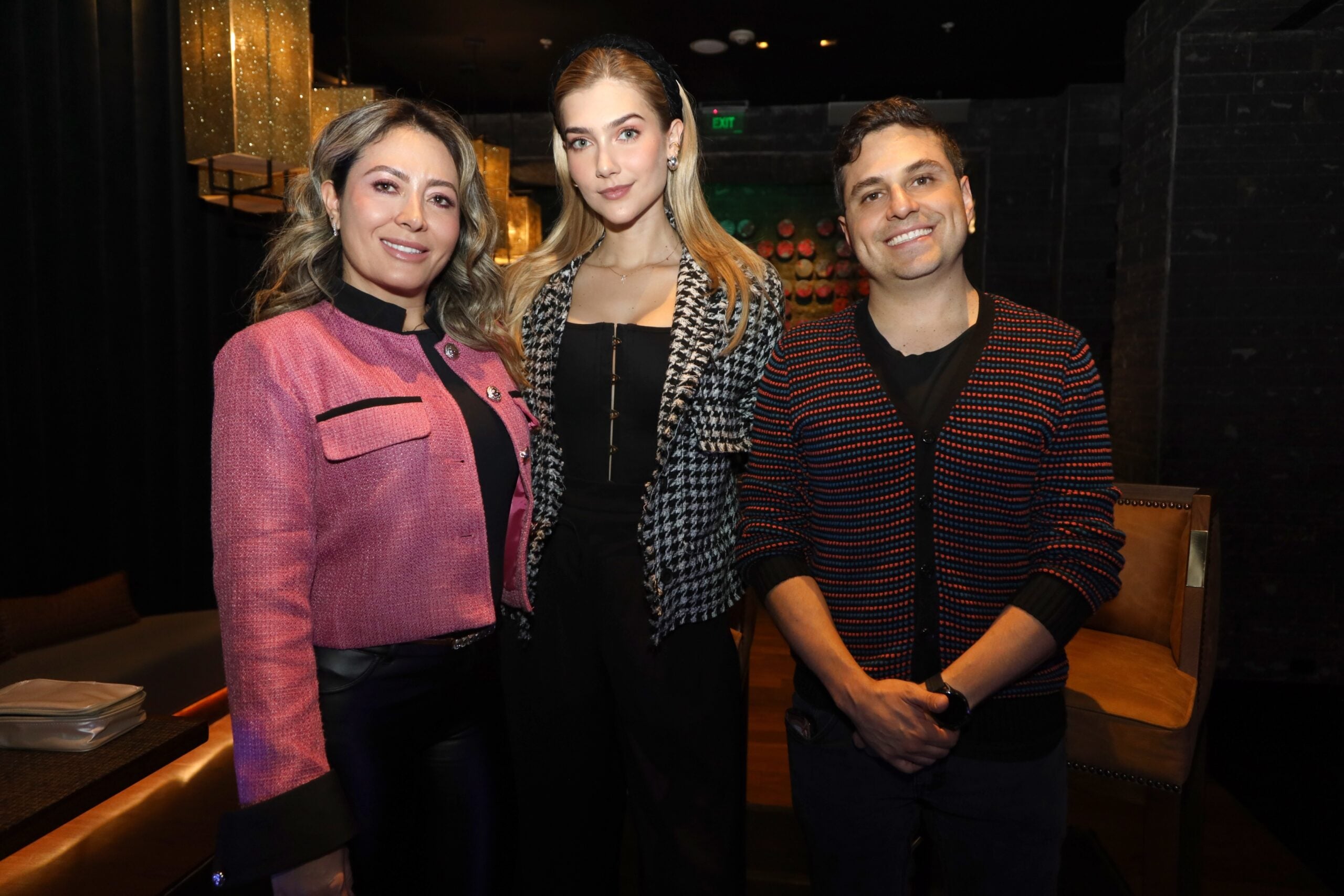 Foto: Catalina Jaramillo, creadora de la marca Catalina Jaramillo; María Fernanda Aristizábal, Miss Universe Colombia 2022; y Óscar Sánchez, make up artist.
