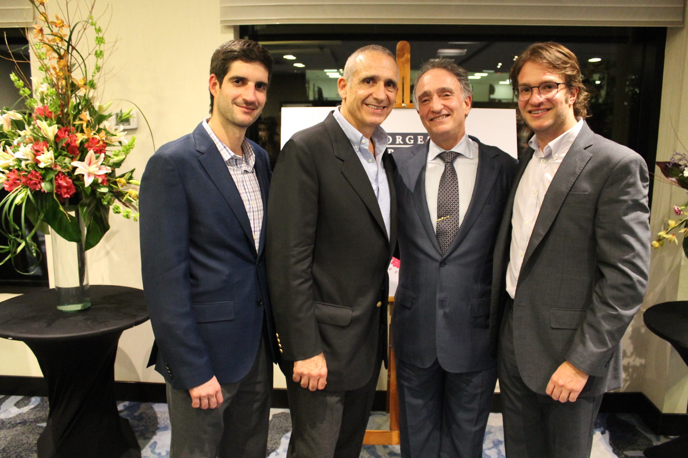 Isidoro Esquenazi con Mauricio Picciotto, Daniel Picciotto (presidente de PDC Vinos y Licores) y Nathan Picciotto en el evento.