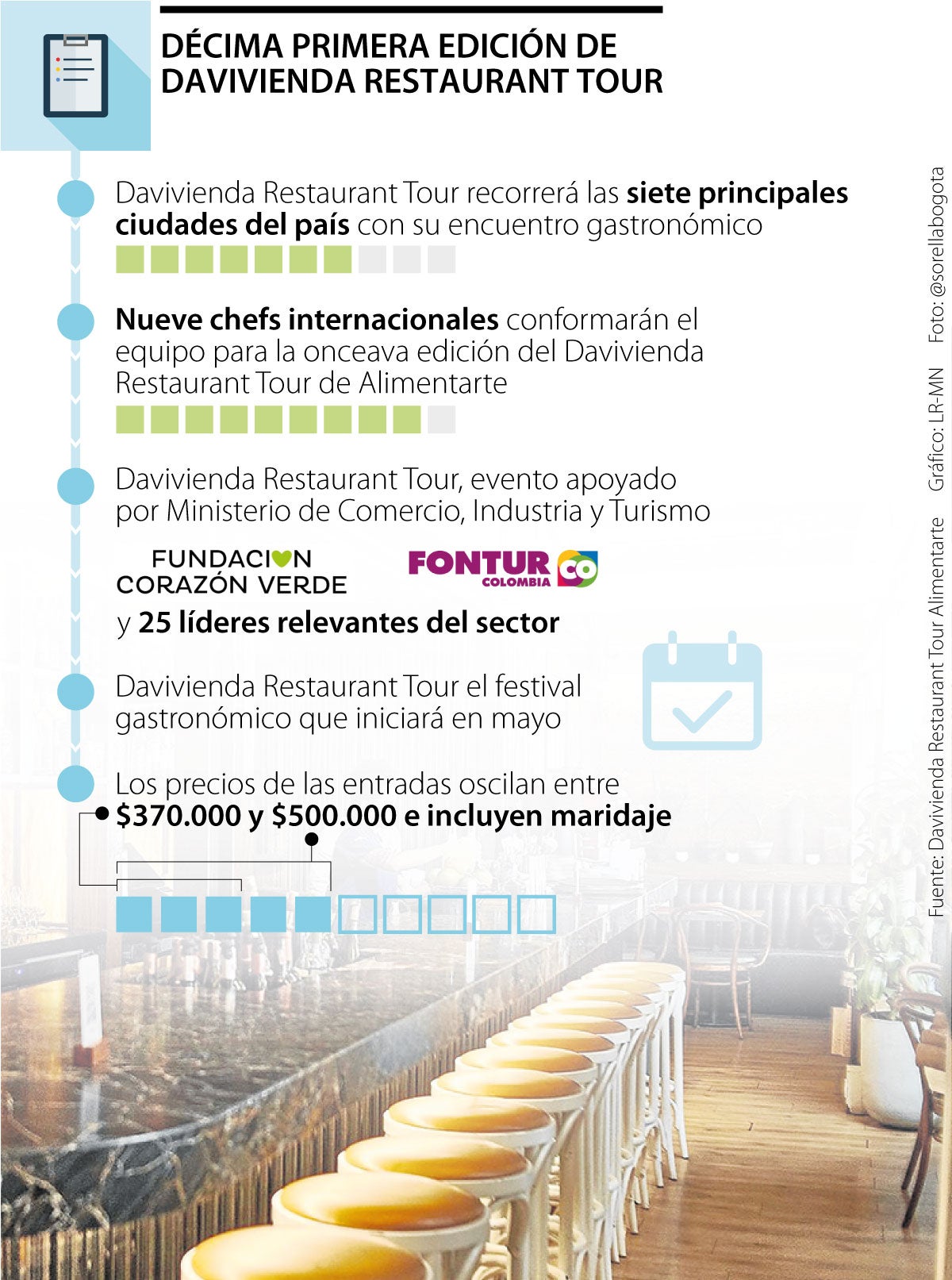 De esta forma, ‘Davivienda Restaurant Tour’ recorrerá las 7 principales ciudades del país con su encuentro gastronómico.Y a ello se suma que se ofrecerán las ‘Master Classes’, las cuales brindarán la oportunidad de que chefs nacionales aprendan de expertos del exterior.