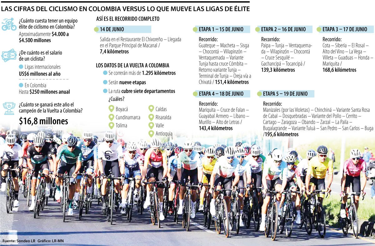 Por eso, acá en LR nos dimos a la tarea de averiguar cuánto gana un ciclista profesional que compite en Colombia frente a lo que puede llegar a cobrar uno que hace parte de un equipo de elite. Como era de esperarse, la diferencia es abismal. Las fuentes consultadas fueron directivos de equipos como NU y Sistecrédito.