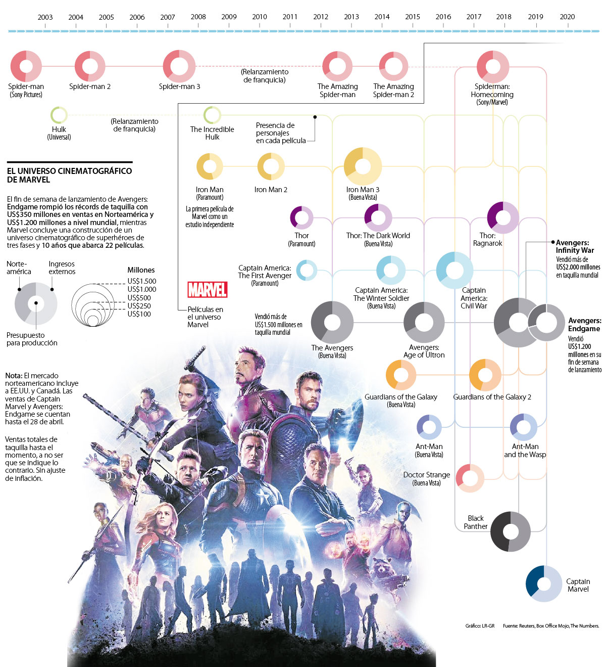 Por eso, LR le trae el orden del universo Marvel y su recaudo a lo largo de los últimos 15 años.