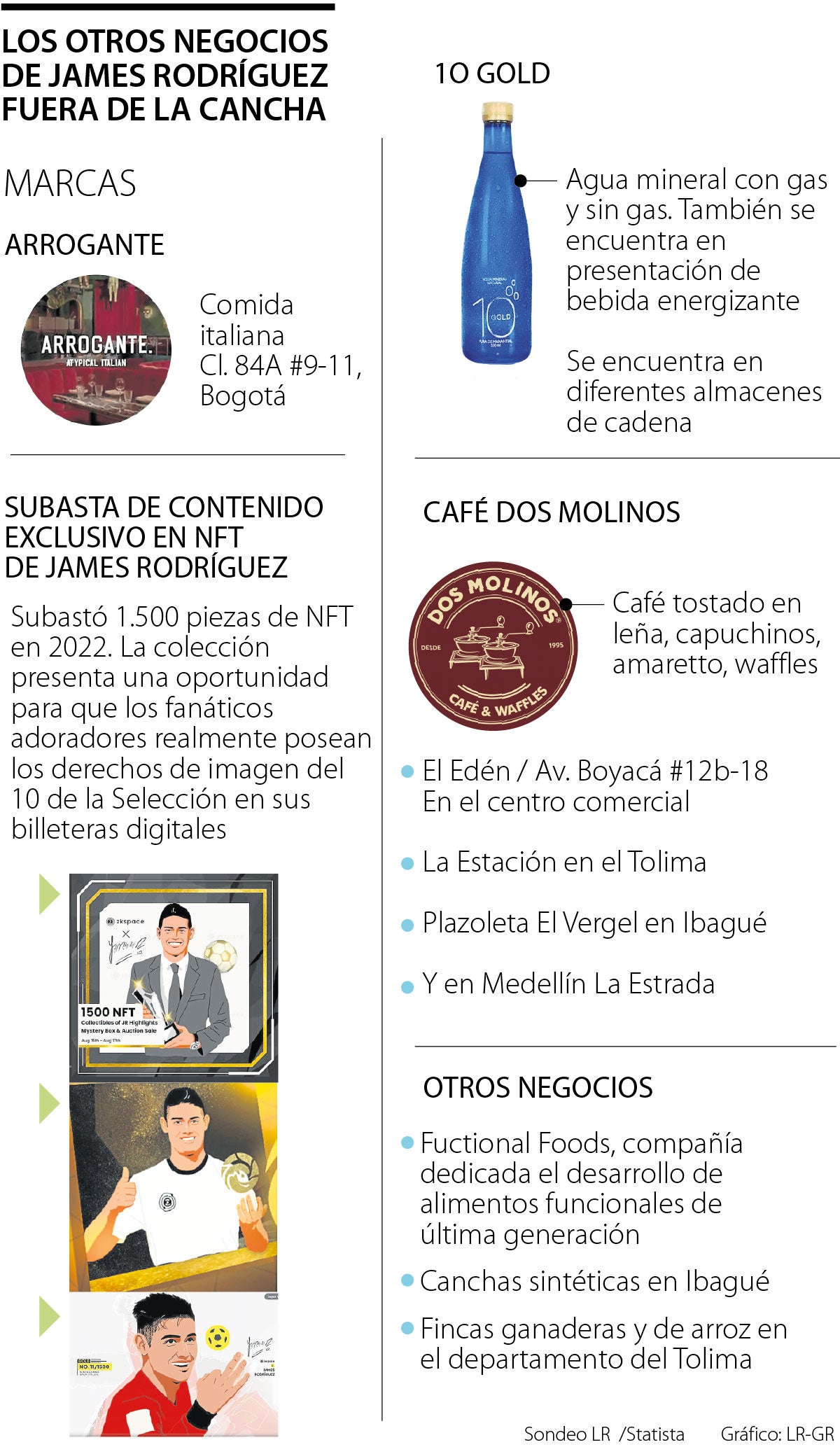 Puede que deportivamente, James Rodríguez no esté pasando por su mejor momento. Sin embargo, en el tema financiero y de los negocios no es así; el 10 de la Selección (ahora sin equipo tras su salida del Olympiacos) sigue abriéndose camino en el mundo empresarial y, obviamente, aumentando sus ingresos.