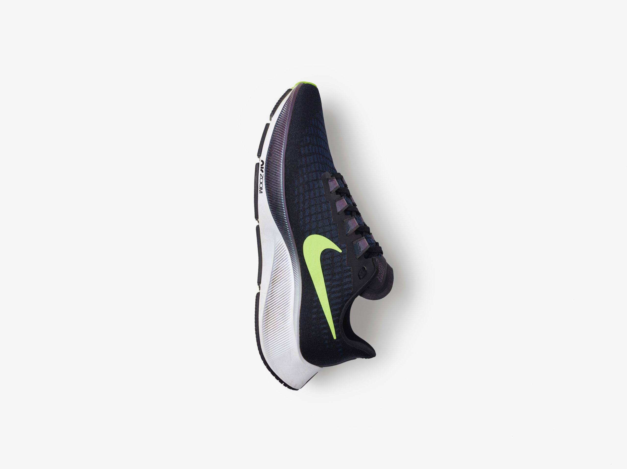 El zapato más icónico de Nike Running, con 37 años, es el Nike Air Zoom Pegasus 37 que está construido con espuma Nike React, la más suave y durable de la marca, además de contar con una cámara de aire interna Zoom Air en el antepie con doble altura y diferencia en presión para mujeres y hombres. Estos zapatos brindan mayor impulso y respuesta ligera debajo del pie sin importar la distancia debido a su diseño especial.