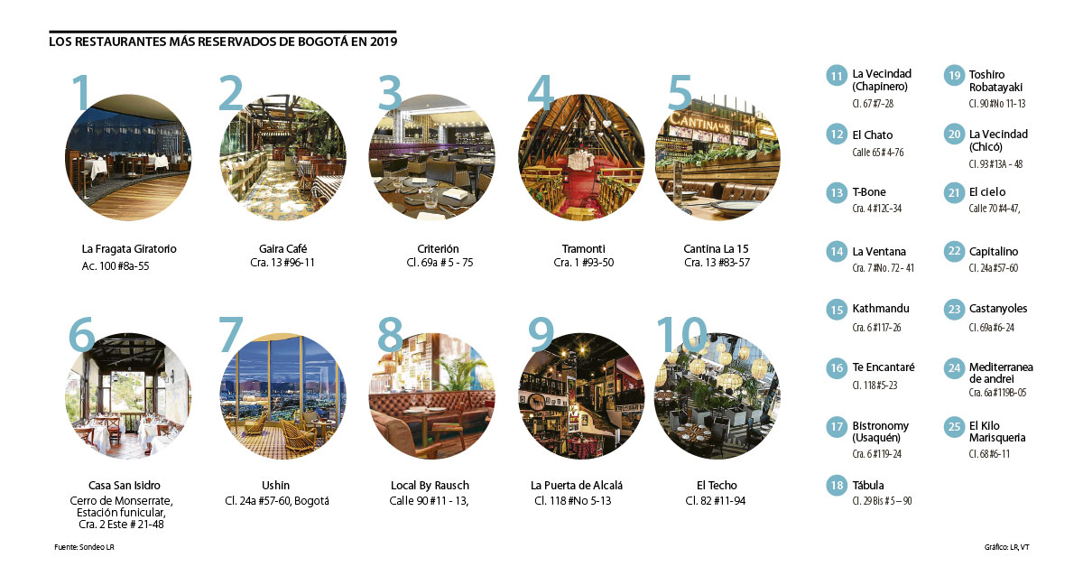 “Entre los comensales en 2019 se destaca que La Fragata Giratoria, con sus más de 50 años en el mercado ocupa el primer lugar y sigue siendo quien lidera la categoría comida de mar, y el preferido de nuestros usuarios. Esto último no sorprende si consideramos que es además el único que maneja el concepto de restaurante giratorio en Bogotá”, resaltó Magdalena Barrenese, directora de marketing para América Latina de la plataforma TheFork.