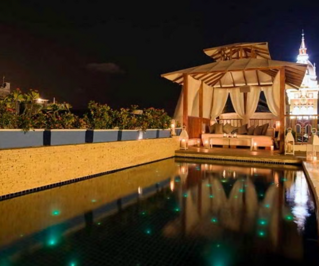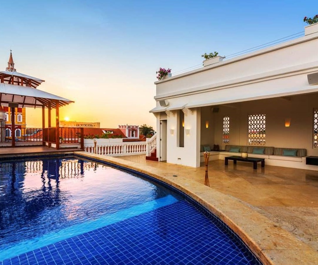 Con un precio de $10,5 millones y 13 camas, en el primer nivel esta casa tiene una piscina tipo loft, cuenta con una sala de reuniones independiente con piscina, así como de una terraza en donde se pueden disfrutar las vistas de la ciudad antigua de Cartagena.
