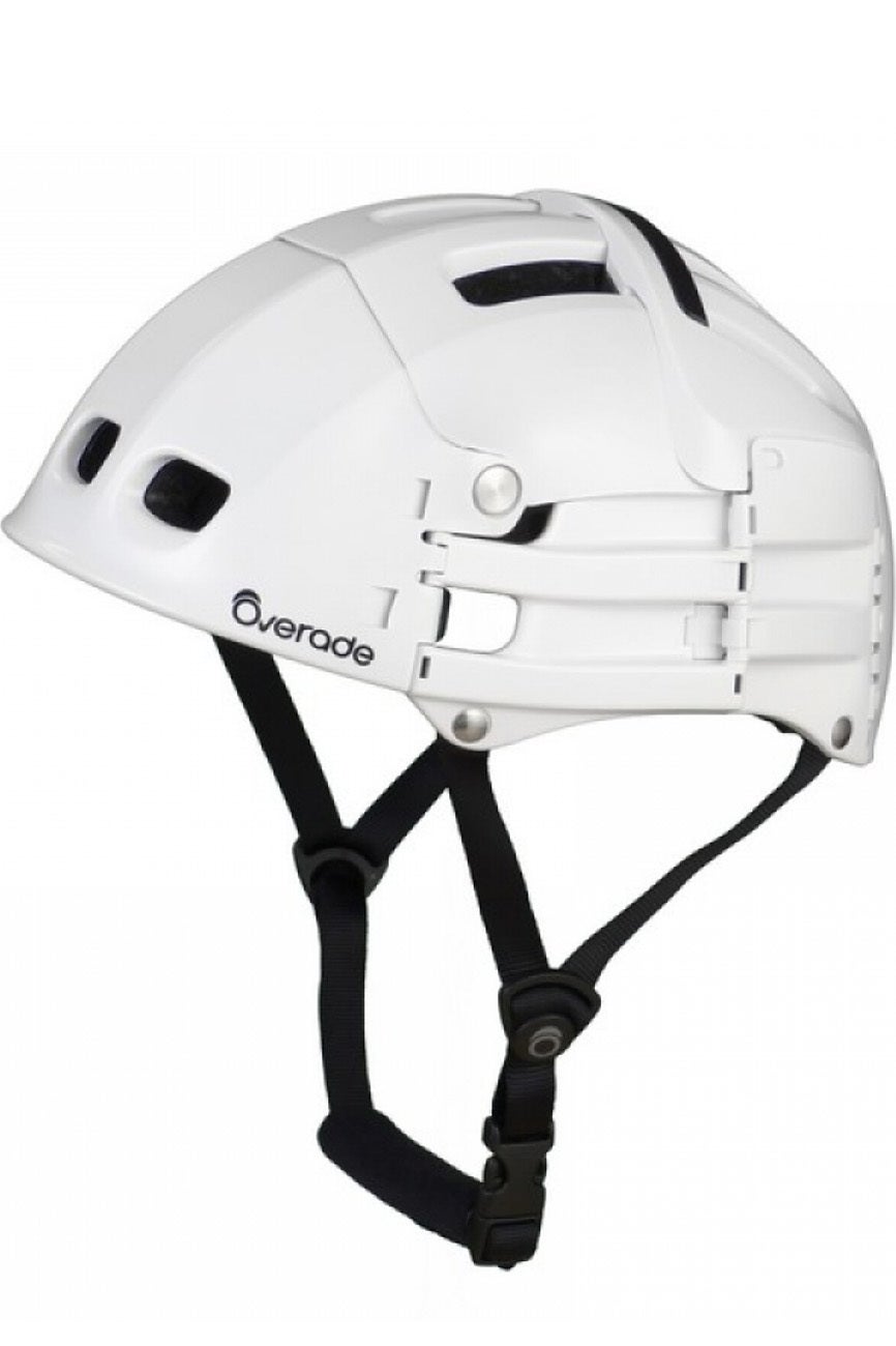 Foto: Un casco muy urbano de la firma Overade. Se pliega en tres partes, de forma muy intuitiva y su almacenaje ocupa muy poco espacio. Su sistema de ajuste es occipital con ruedecilla y lleva protección especial en la barbillas. Su interior es de poliestireno expandido con espumas de distinto grosor que lo hace muy cómodo. Lleva 14 tomas de aire. Su peso es de 440 gramos y su precio 99 euros (US$118).