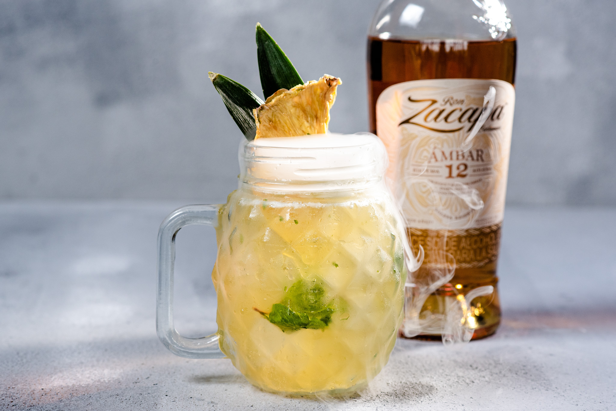 Este coctel clásico resalta las notas características del ron. El Zacapa es un ron que usa una levadura modificada de piña para hacer el proceso de fermentación de la miel de caña y eso le da características cítricas y tropicales, por lo que al coctel también se le agregan zumo de limón y hierbabuena. Se acompaña con una fogata de canela para dar más vida.