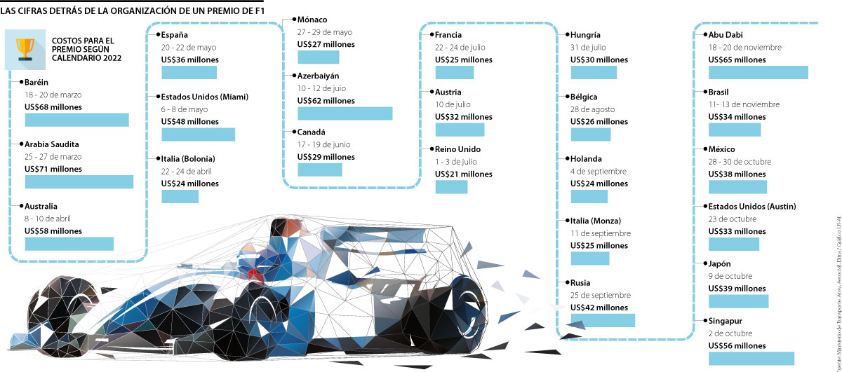 Por ejemplo, mientras que para Arabia Saudita, que tendrá su premio del 25 al 27 de marzo, el nombre como sede le costará en 2022 US$71 millones; pero para Mónaco, el más glamoroso y referente de todos los circuitos, allí se destinarán US$24 millones para la organización de este año. La diferencia se debe a la experiencia que cada ciudad anfitriona logra con los años, pues hay gastos logísticos que reducen o aumentan. En el caso de los países árabes las condiciones climáticas y de infraestructura generaron que el capital inicial fuese más costoso que para países en los que ya es tradición tener F1, como los europeos.