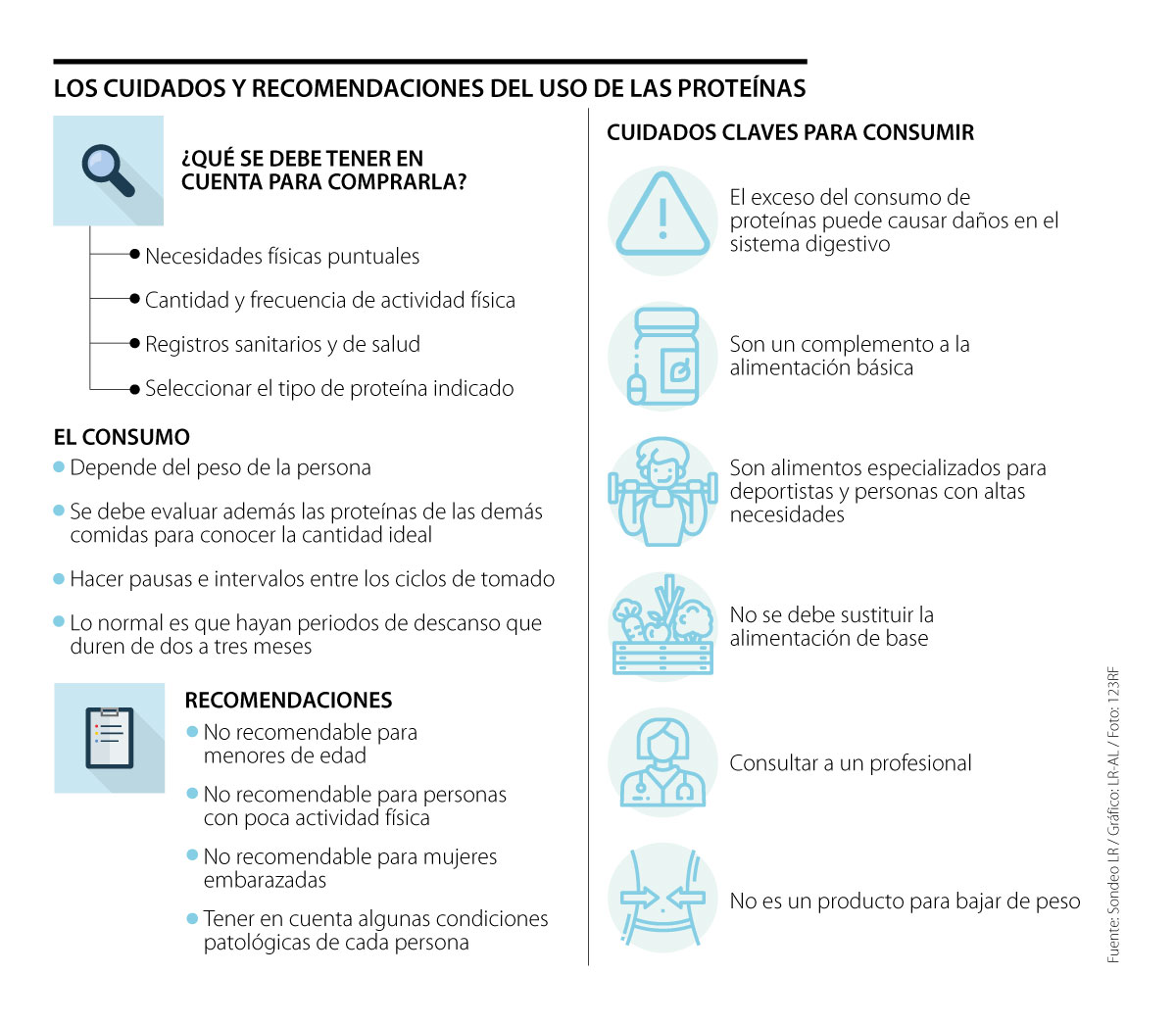 Molina también explicó que para determinar si la proteína es adecuada se tienen en cuenta factores como: la edad, si la persona tiene alguna patología preexistente que pueda influenciar el proceso, o lo hagan no, apto para el consumo de estos productos, la cantidad y frecuencia de actividad física, entre otros factores claves como el peso. Además la cantidad y frecuencia de la proteína se determina con este proceso también.