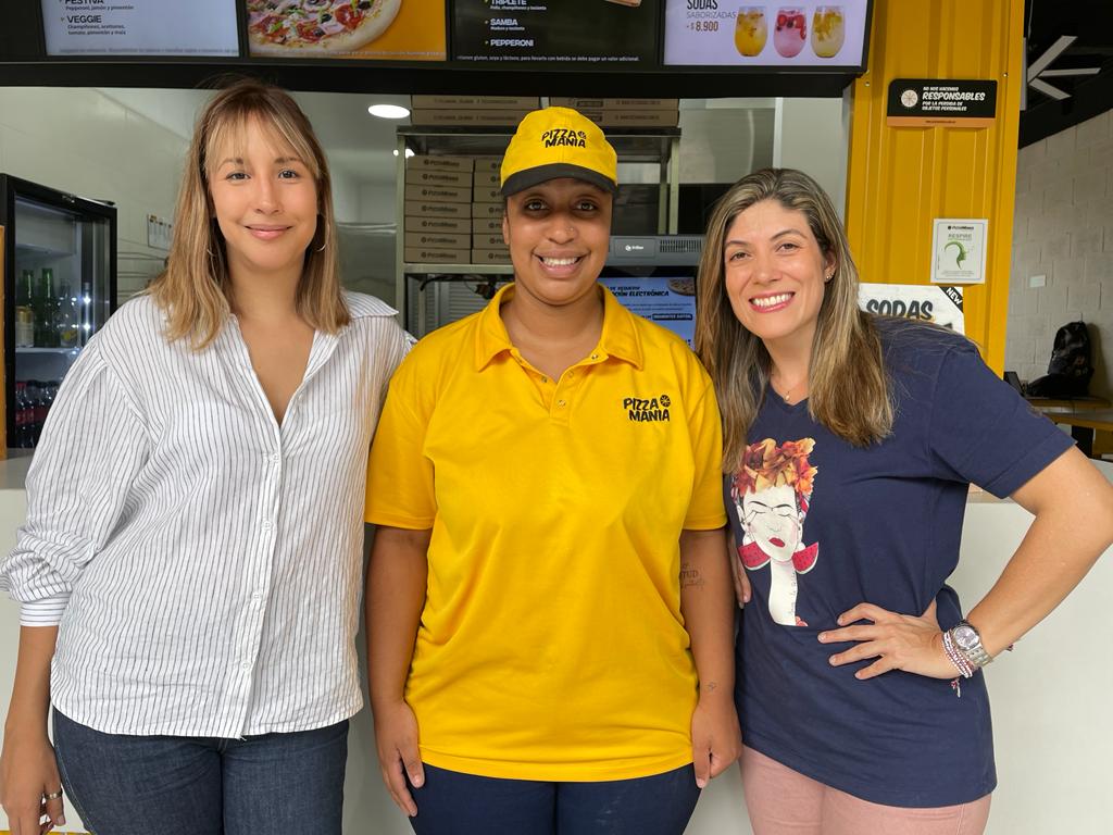 Foto: Katherine Jiménez, coordinadora brand experience; Isamar Angulo, equipo Pizzamanía; y Claudia Pérez, gerente de mercado FSQ Group.