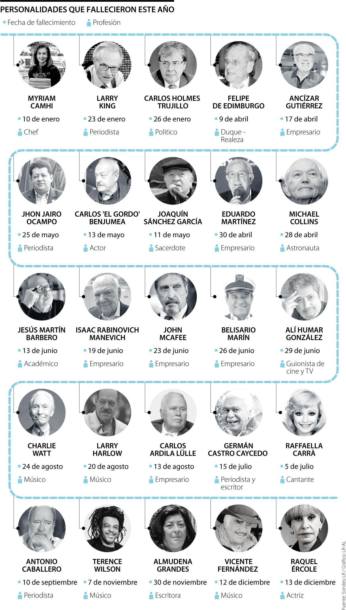 En todos los sectores hubo noticias de este tipo, en el empresarial, por ejemplo, el deceso de Carlos Ardila Lülle, que dejó un legado en múltiples industrias, o el emprendedor Ancízar Gutiérrez; por eso LR recopila nombres de otros líderes que fallecieron este año.
