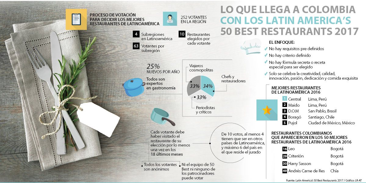 El evento se llevará a cabo en el Teatro Mayor Julio Mario Santo Domingo, fecha en la que se revelará el listado de los mejores 50 restaurantes de Latinoamérica en 2017 y en la que se reconocerá el trabajo de los chef más destacados de la región.