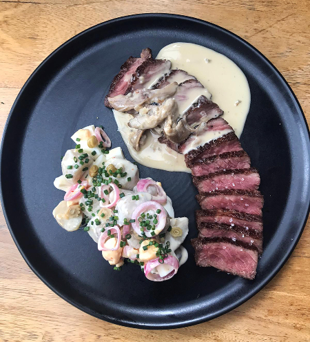 Lomo Wllington, morrillo con rub de Jamaica y pescado pil pil son las opciones de proteína de los menús que vienen con postres y regalos para las madres como un mandil o una entrada de corazones de pollo o jamón de pato.
