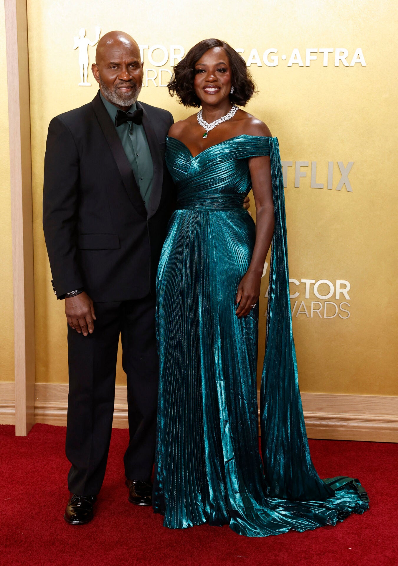 Julius Tennon y su esposa, Viola Davis, ganadora de un Oscar, posan en la alfombra roja durante la gala de los Premios al Actor, celebrada en Los Ángeles, California