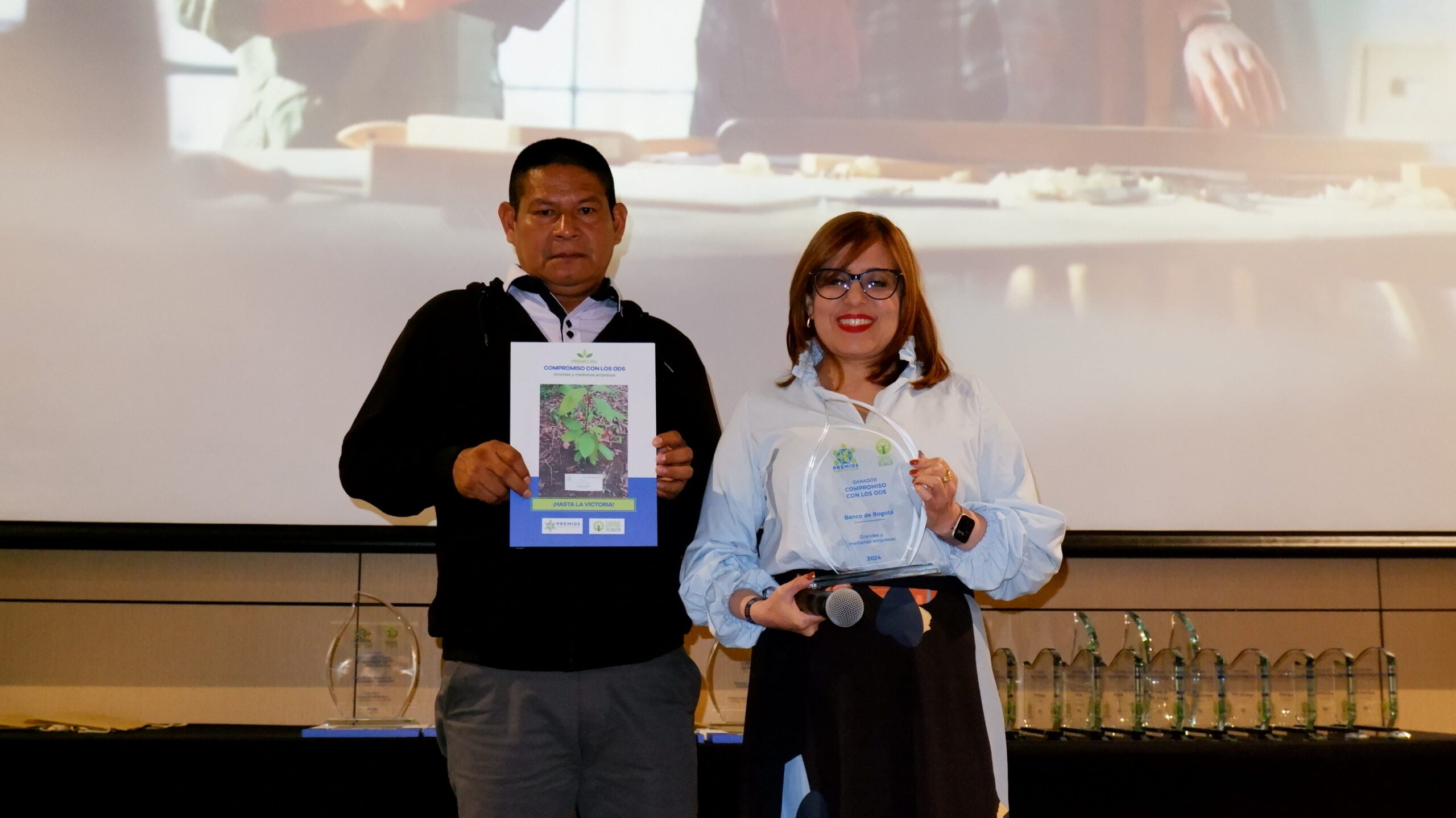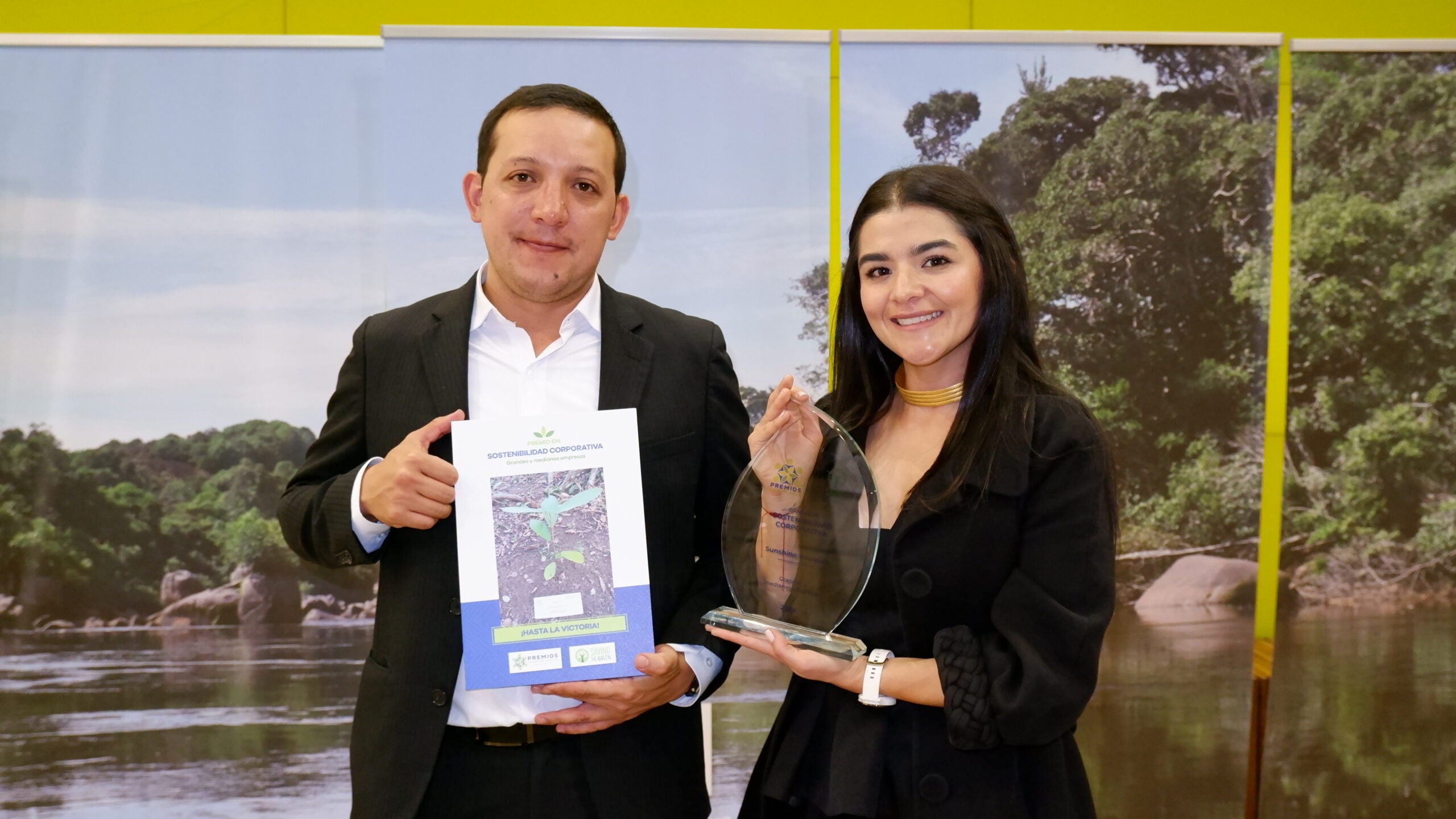Fredy Laiton, gerente de Desarrollo Organizacional, y Estefanía Nieto, jefe de Sostenibilidad Ambiental de Sunshine Bouquet.