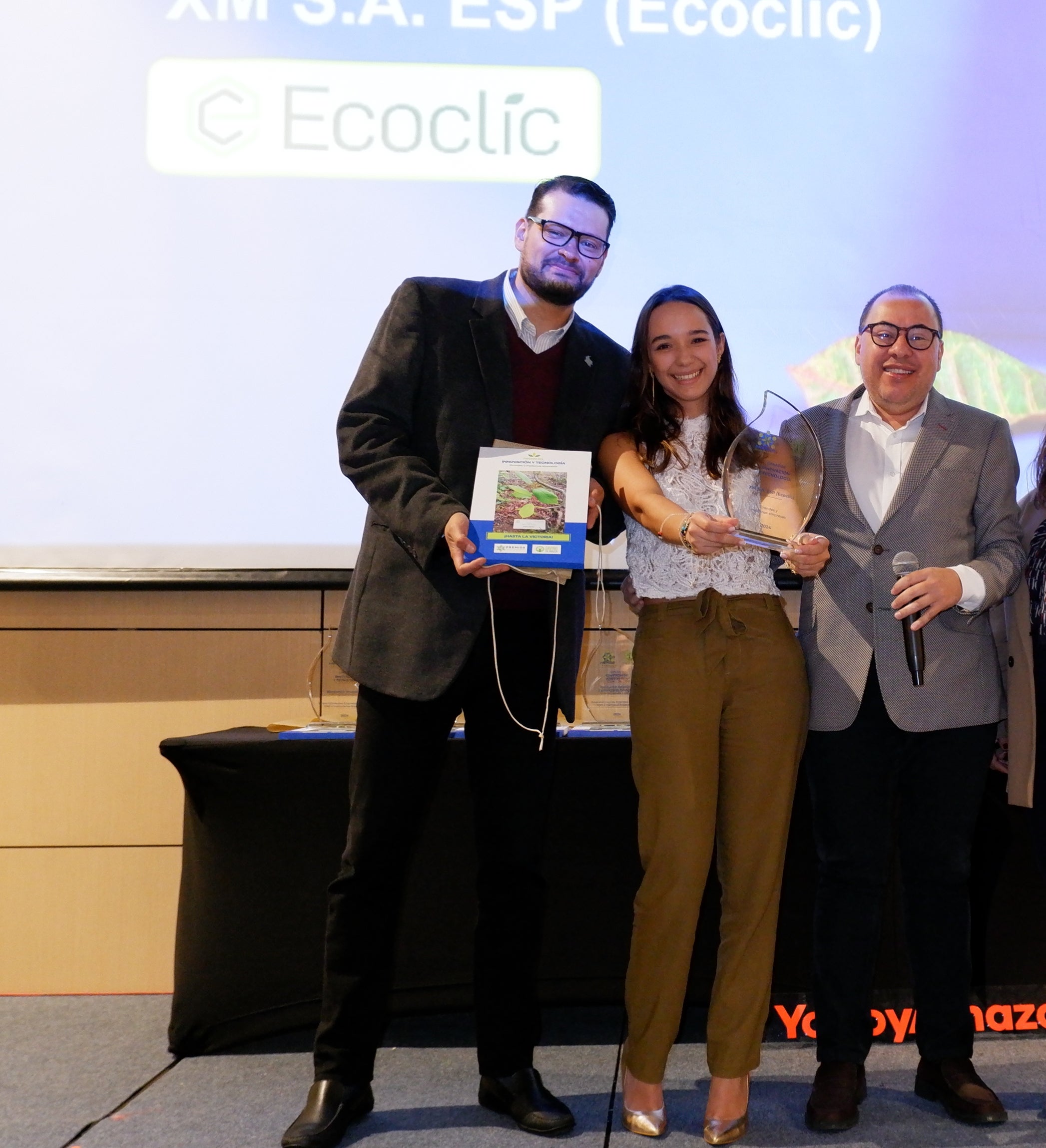 Los representantes de XM, Francisco Charry, Maríana González Torres, y Jaime Alejandro Zapata.
