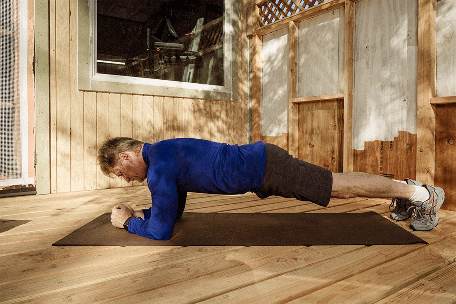 Cómo: Comience en una posición de tabla baja con los codos directamente debajo de los hombros y los antebrazos apoyados en el suelo. Sus pies deben tocarse o no estar a más de una pulgada de distancia. Alterne levantando cada brazo del suelo y extendiendo la mano hacia afuera, con la palma hacia adentro. Trate de mantener las caderas niveladas mientras cambia su peso de un brazo a otro.