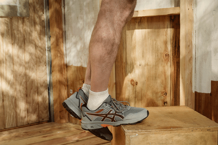 Opción: Realice el ejercicio frente a una pared o el respaldo de una silla y apoye las yemas de los dedos en la superficie para ayudar con el equilibrio. Para un desafío, actúe con el talón de su pie estacionario colgando de un escalón o bordillo.