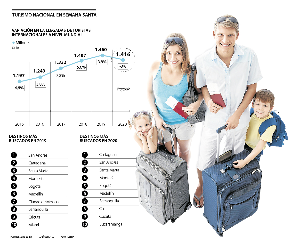 En el caso puntual de esta última empresa los más buscados para la jornada santa de este año son Cartagena, San Andrés, Santa Marta, Montería y Bogotá; las mismas cinco que fueron más buscadas en 2019.
