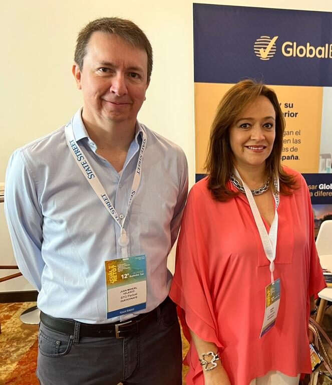 Juan Velasco, socio y deputy CEO de BTG Pactual; y Sandra Perea; superintende delegada para Emisores.