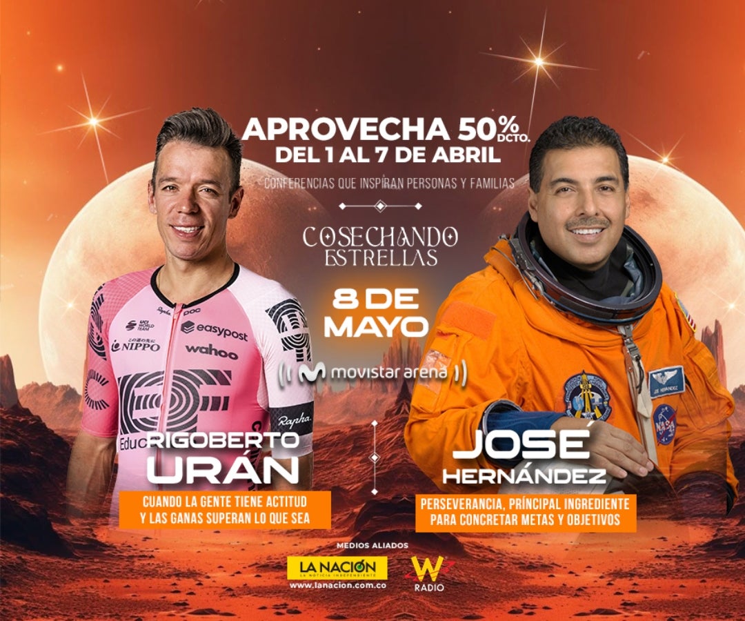 Asista este 8 de mayo a la conferencia ‘Cosechando Estrellas’ en el Movistar Arena. El evento ofrecerá una experiencia motivacional transformadora de la mano de dos figuras inspiradoras: José Hernández, exastronauta de la Nasa, y Rigoberto Urán, destacado ciclista, en la que ambos compartirán sus historias de vida marcadas por la perseverancia y la disciplina.