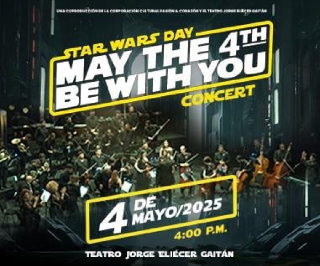 Este 4 de mayo, el universo de Star Wars arriba a suelo terrícola, específicamente en el Teatro Gaitán. En la velada se presentarán al mejor estilo de la Orquesta Filarmónica Metropolitana las instrumentales de esta famosa saga, en la que se rendirá homenaje a las icónicas composiciones de John Williams, ofreciendo una experiencia única llena de espíritu galáctico.